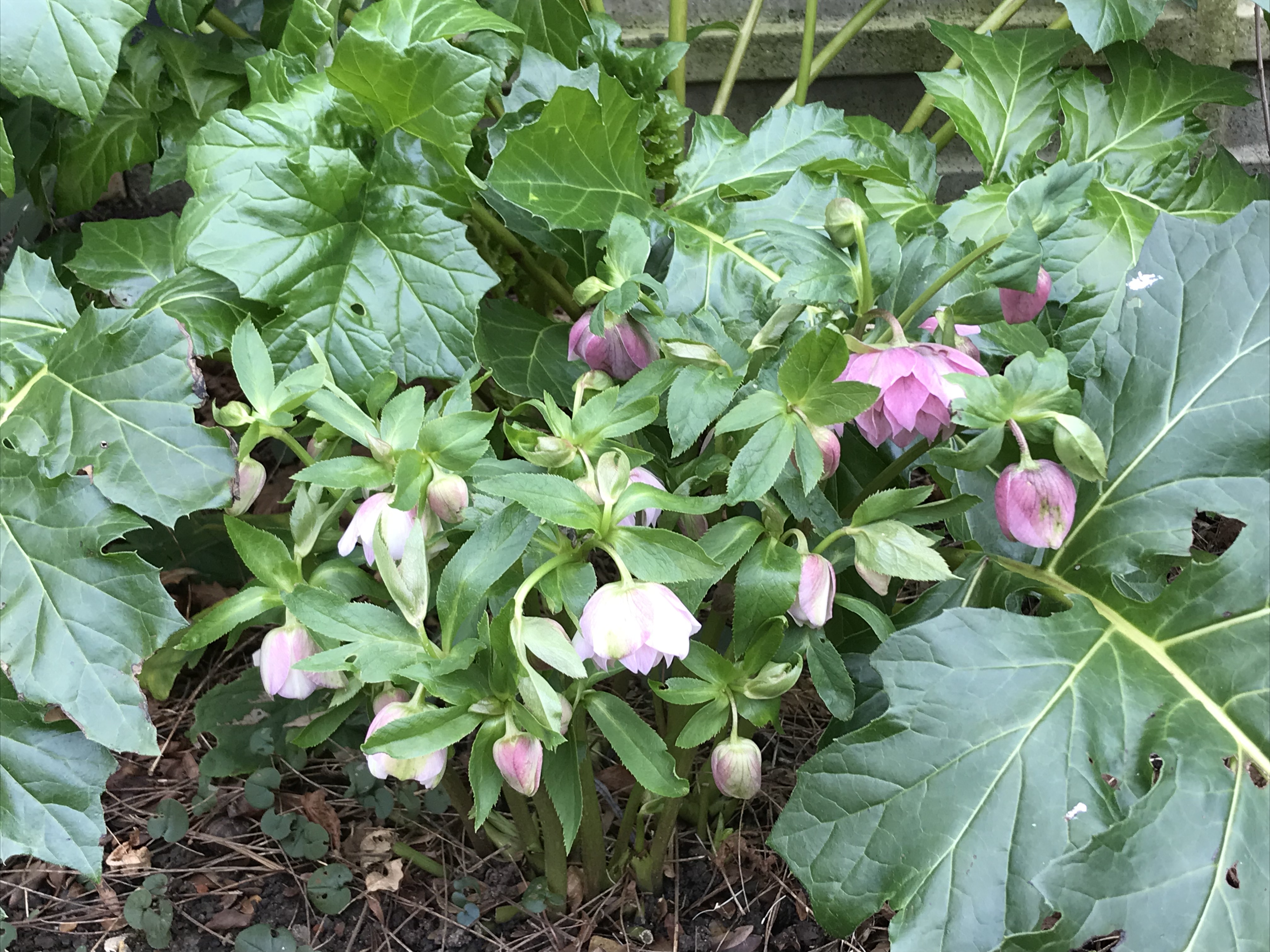 My shade is coupled with London clay and, although I have added lots of compost and leaf mold to open up the structure of the soil, it still tends to be heavy. When I inherited the garden there was a large clump of Helleborus x hybridus. It loves the shady spot it was planted in and seeds itself around with joyous abandon. I have added some more specific glamorous varieties that lighten up the garden from late January and are still flowering as I write.