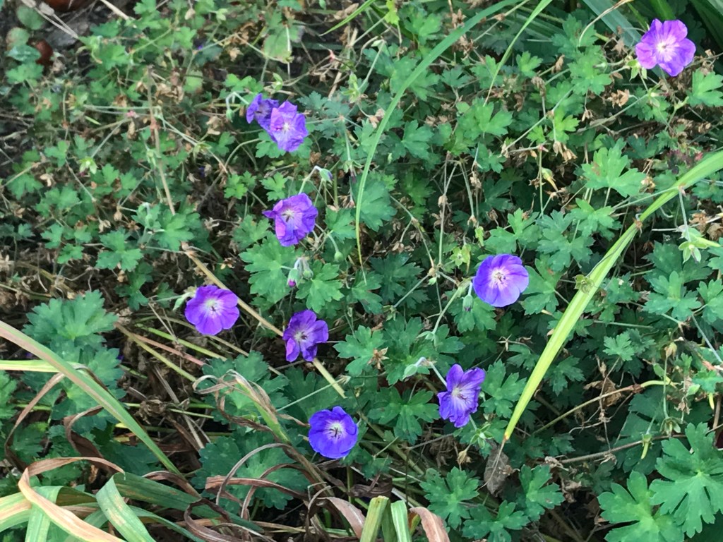 In my garden Geranium ‘Orion’ is still going like the clappers.  It is a wonderful bluey/purple geranium flowering constantly from May til November.  The bees love it and it gets better and better each year. Orion scrambles through other plants and doesn’t complain if you give it a bit of a short back and sides. I have specified this in a number of gardens and it is a total winner every time.