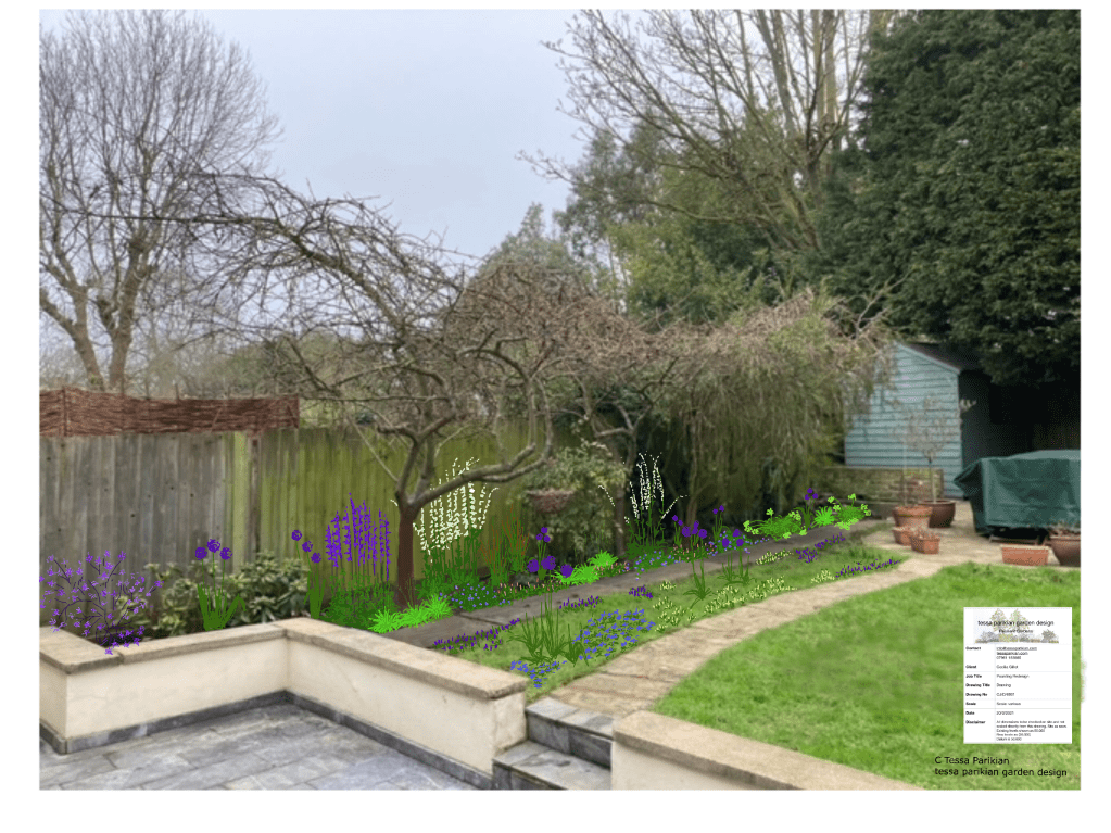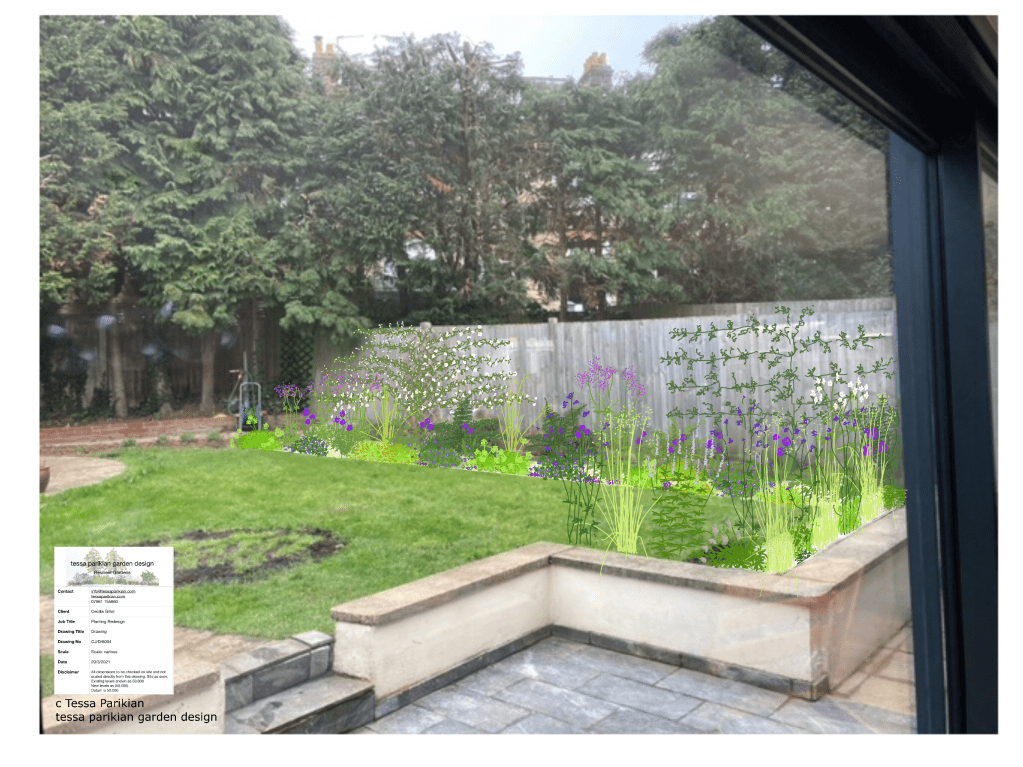 The clients wanted to add to there minimal flower borders to create a garden with lots of flowers for pollinators that would have a long flowering season. Like most gardens the borders needed both shade and sun loving plants. The clients were nit afraid of colour which meant the planting palette could be varied and striking.