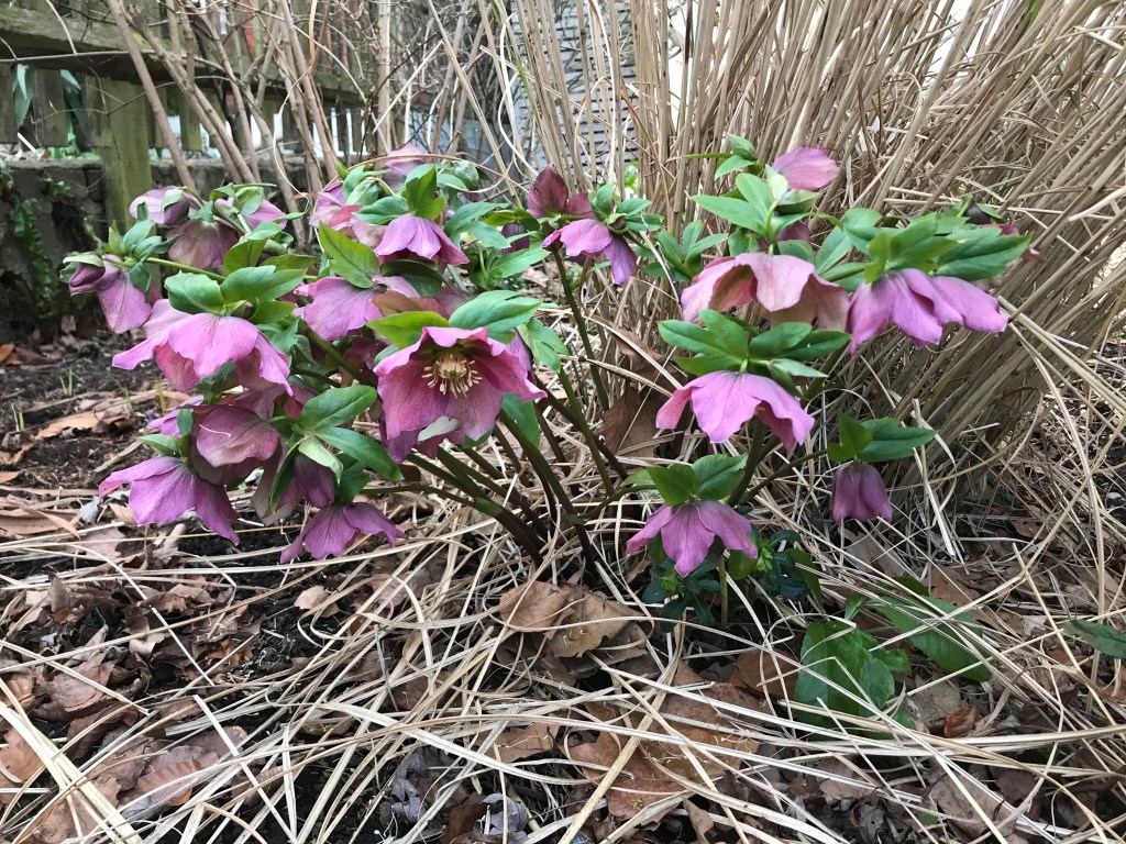 Another star of the late winter/early spring garden are the hellebores. Even the most mundane ones, Hellebore x orientalis, which have two-tone pale pink and pale green flowers are lovely. I have a massive clump near the compost bin and I am always happy when the flower spikes push up their heads and droop so demurely. I splashed a bit of cash on some slightly more glamorous colours and they are lovely but the cheaper orientalis is a reliable joy.